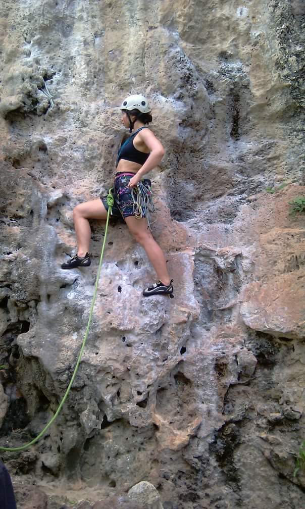 Focus on breathing, stretching, moving, and on the beauty of placing the tip of your shoe on a hold and the feeling of carefully grasping a hold with your hand.